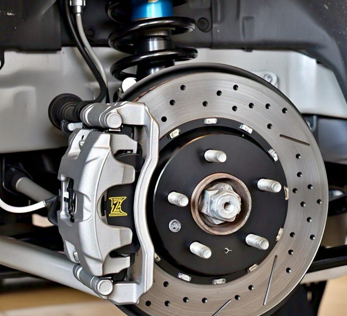 Drilled, slotted, or larger rotors improve heat dissipation and stopping power.